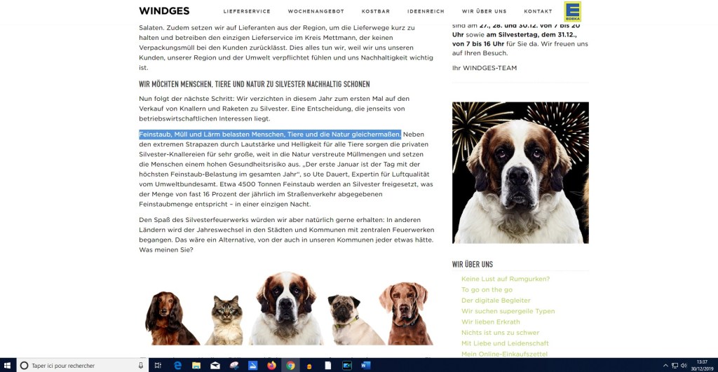 Un revers de la médaille qui a poussé plusieurs enseignes de supermarchés à renoncer à la vente de feux d’artifice. La première à avoir lancé le débat est un franchisé de la chaîne de supermarchés Edeka à Erkrath. « Bien entendu, nous voulons conserver la joie de la Saint-Sylvestre, écrit l’enseigne dans un communiqué de presse. Dans d’autres pays, le changement d’année est fêté autour d’un seul feu d’artifice central. Ce serait une alternative pour nos communes. Qu’en pensez-vous ? ».