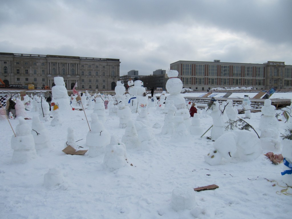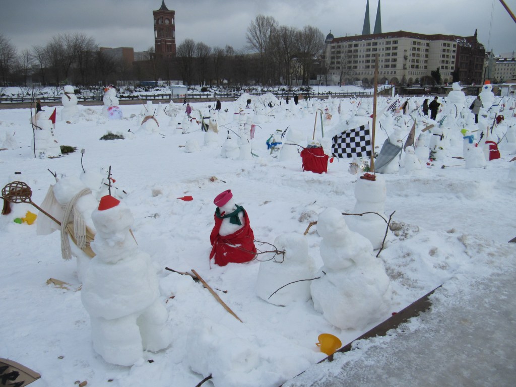 En 2010, une armée de bonhommes de neige avait envahi une large place au centre de Berlin. L’action n’était pas organisée par des particuliers ayant tous eu la même idée au même moment, mais par un artiste, Ralf Schmerberg, soutenu par un fournisseur d’électricité verte, qui voulait alerter contre le changement climatique, que l’on appelait crise climatique (Klimakrise).