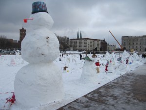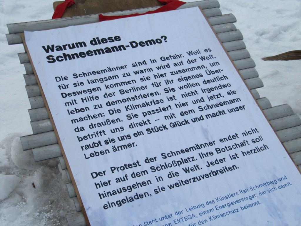 Les hivers berlinois, froid et neigeux, semblent appartenir au passé. En 2010, une manifestation de bonhommes de neige alertait déjà sur ce phénomène.