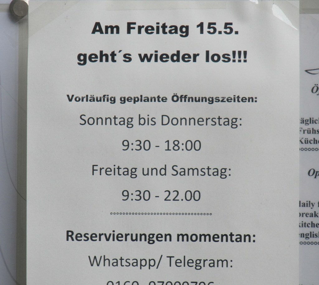 Par ailleurs, alors qu’en Allemagne, il est coutume de s’attabler sur les larges tables avec des inconnus, en ces temps de Coronavirus, seuls les membres de deux foyers différents au maximum peuvent être assis ensemble. Enfin, l’écart entre les chaises doit être de 1,5 mètre. Par manque de place, cette disposition est difficile à réaliser et c’est pourquoi le Sénat de l’arrondissement de Friedrichshain-Kreuzberg étudie la possibilité d’agrandir les terrasses des cafés et restaurants en empiétant sur les trottoirs, sur les bandes de stationnement ou même la rue. Cela leur permettrait de recevoir plus de monde, tout en respectant les distances requises. A ce jour, plus de 300 dossiers de demande ont été déposés. En outre, pour soutenir les gérants, à partir du 1er juillet, la TVA dans la gastronomie sera abaissée de 19 % à 7 % pendant un an.
